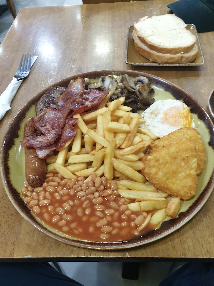 Update....they have new sauce bottles Lovely coffee here. Beans still warm not hot. A nice cafe. Cash only! Had a breakfast Saturday morning. Breakfast served piping hot but with luke warm beans, shame. Not greasy which is always good. Typical cafe sausages which I dislike, also got toast when requested bread and a milky tea with a tea bag in it doesn't equal into the strong tea I requested but was replaced with a proper cup thanks to the boss. Think its time to replace the sauce bottles! Limited parking in the area.